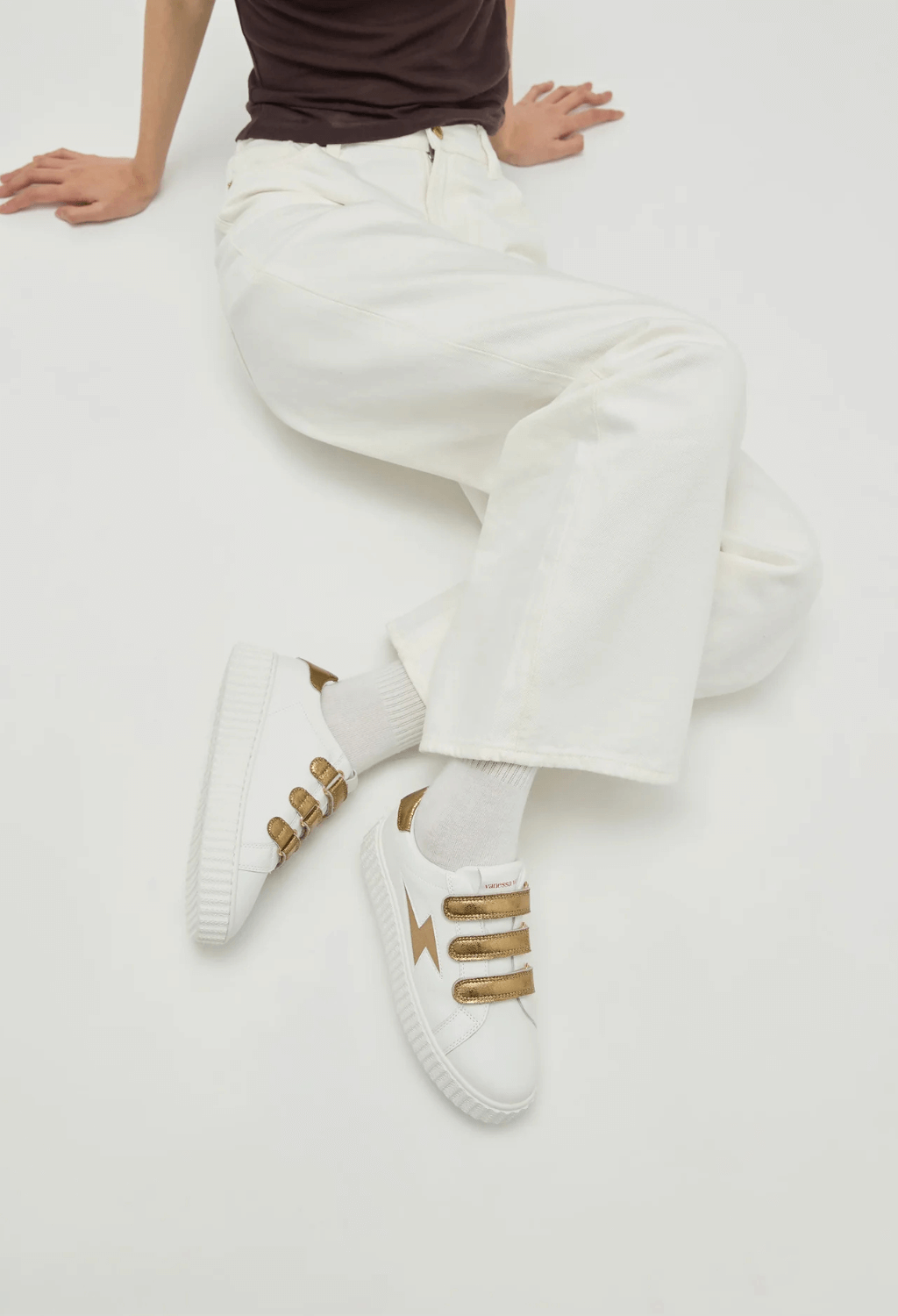 Sans oublier la classique basket blanche, pimpée de l’éclair iconique de la marque qui se réinvente sans arrêt et chaque saison !